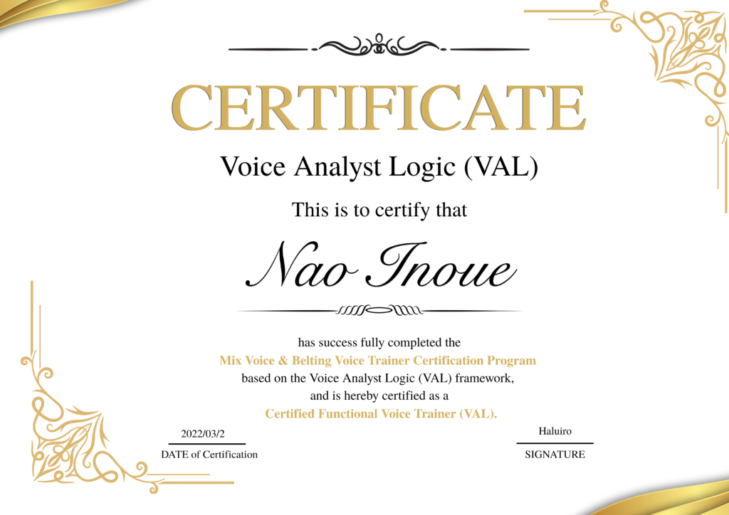 ハリウッド式ボイストレーニングに基づく科学的なアプローチで活躍する認定ボイストレーナー。ベルティングボイス、共鳴発声、ミックスボイス、ヘッドミックスなどの技術を用い、解剖学や音声学に基づく理論的なボイストレーニングを提供している。