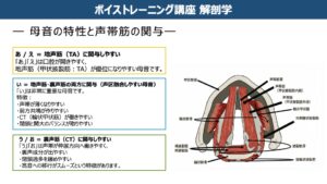 「う」「お」は声帯が伸展方向へ働きやすく、
